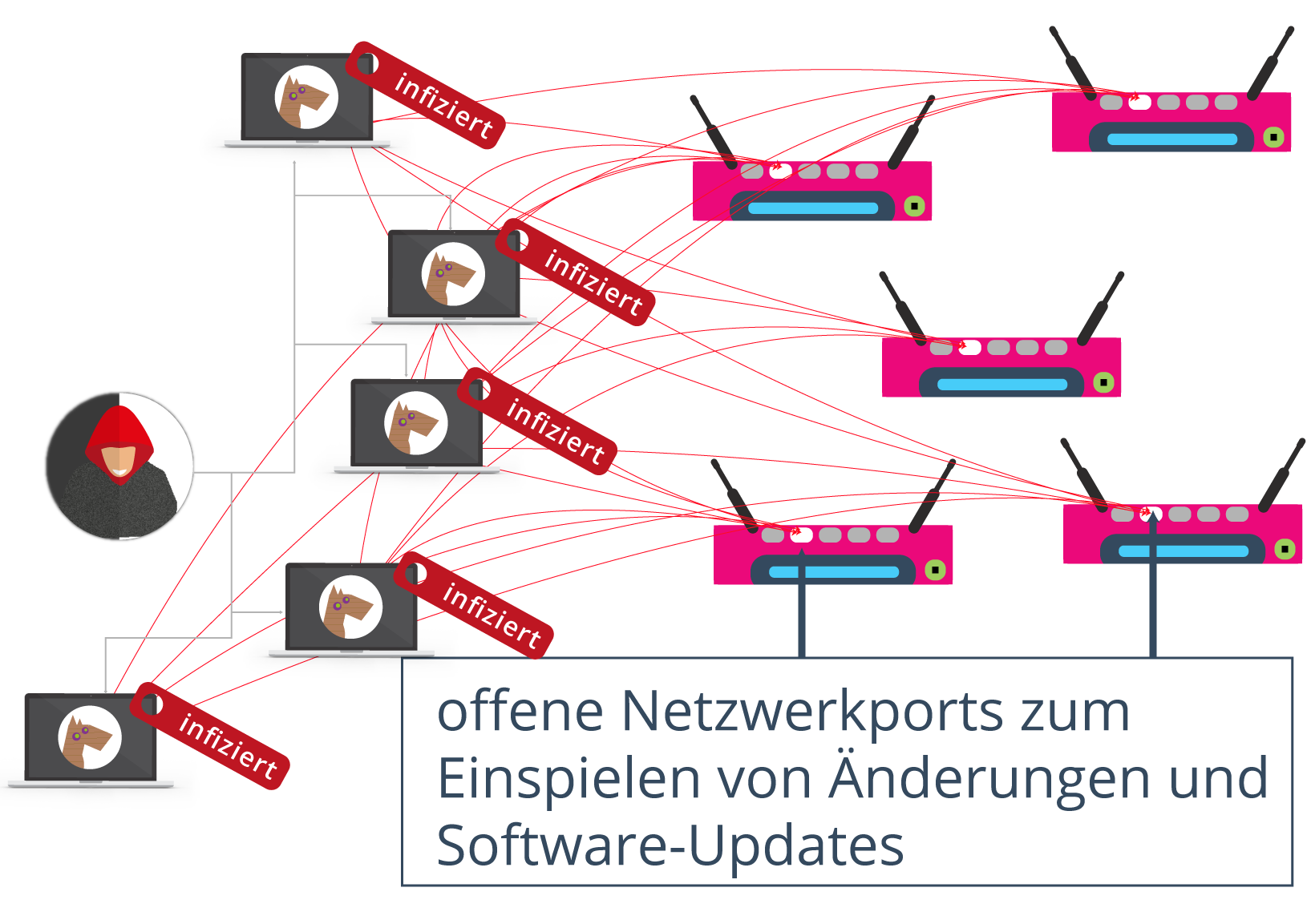 Über diesen Port nehmen Netzbetreiber Änderungen und Software-Updates aus der Ferne vor. Das Ziel bestand vermutlich darin, durch eine Sicherheitslücke im Fernwartungsprotokoll, die Geräte mit Schadsoftware zu infizieren und sie zu einem Teil eines globalen, auf dem Code Mirai-basierenden Botnetz zu machen. Um dem Super-Botnetz Mirai das Handwerk legen zu können, müssten Experten die gleichen Sicherheitslecks wie Mirai nutzen und sich dabei selbst auf rechtswidriges Terrain begeben. Die Gefahr ist also nicht so einfach gebannt!