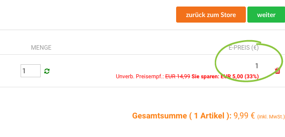 Abb. 2: Angreifer versucht den Online-Store von SupraTix zu hacken, indem er den Preis des Kurses verändert.