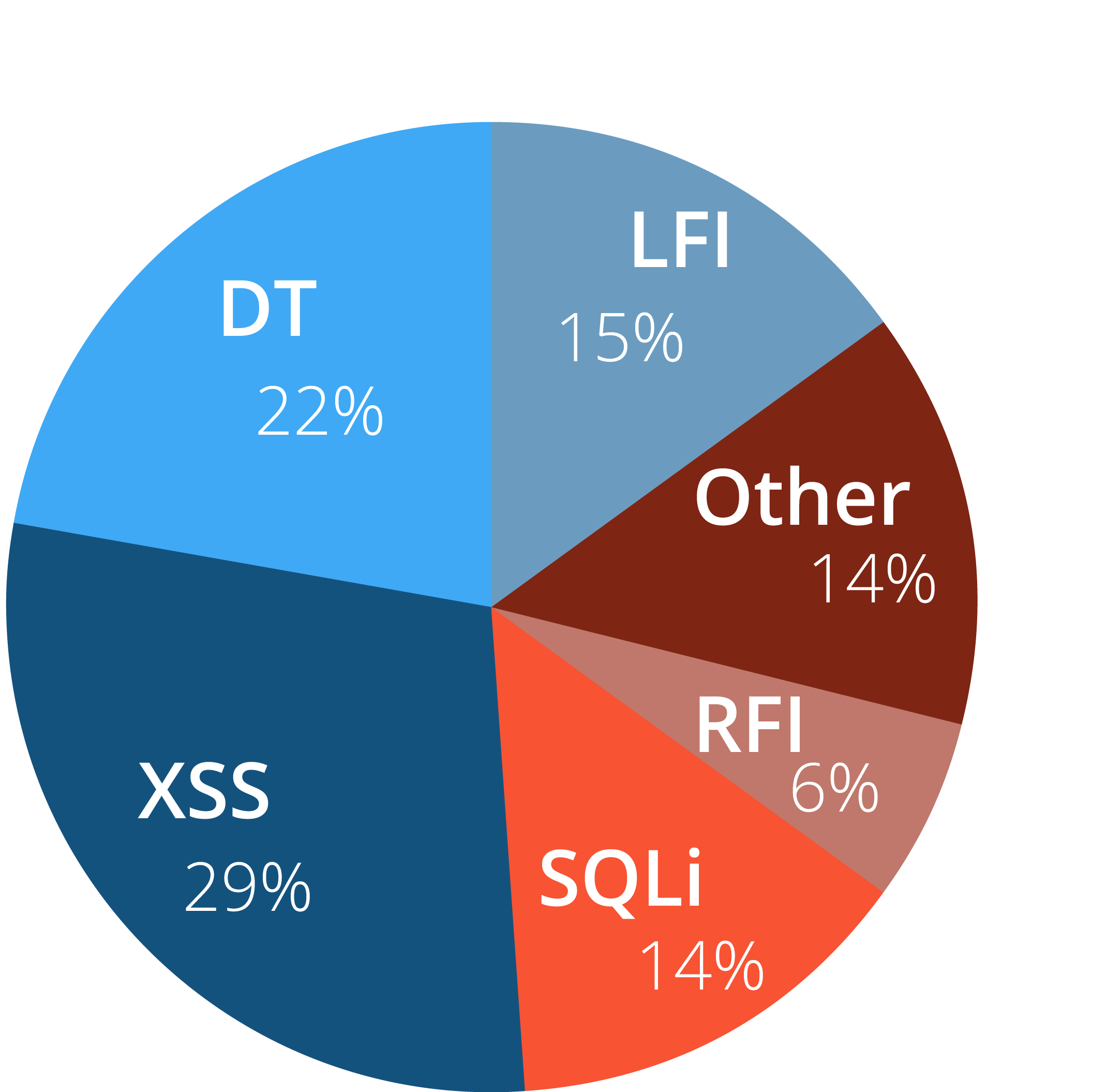 - RFI- und LFI-Angriffe machen zusammen etwa 20% aller Angriffe auf Web-Anwendungen aus,
