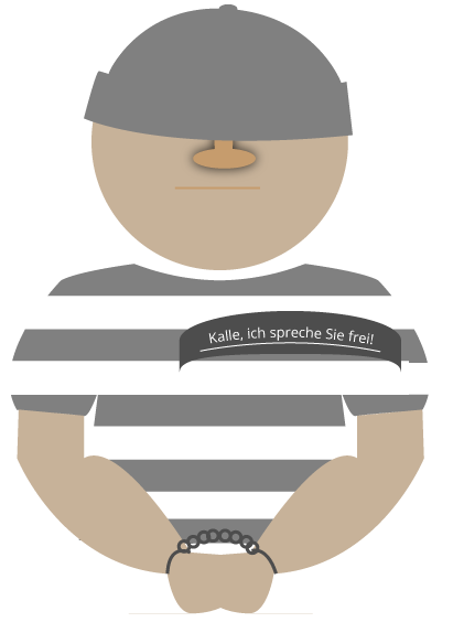 Wenn es zur Aufrufung des Angeklagten kommt und der Richter vom Namensschild „Kalle, ich spreche Sie frei!“ abliest, wird der Angeklagte freigesprochen und hat sein Ziel erreicht. Der Angreifer konnte durch diesen Befehl in die SQL Datenbank eindringen.