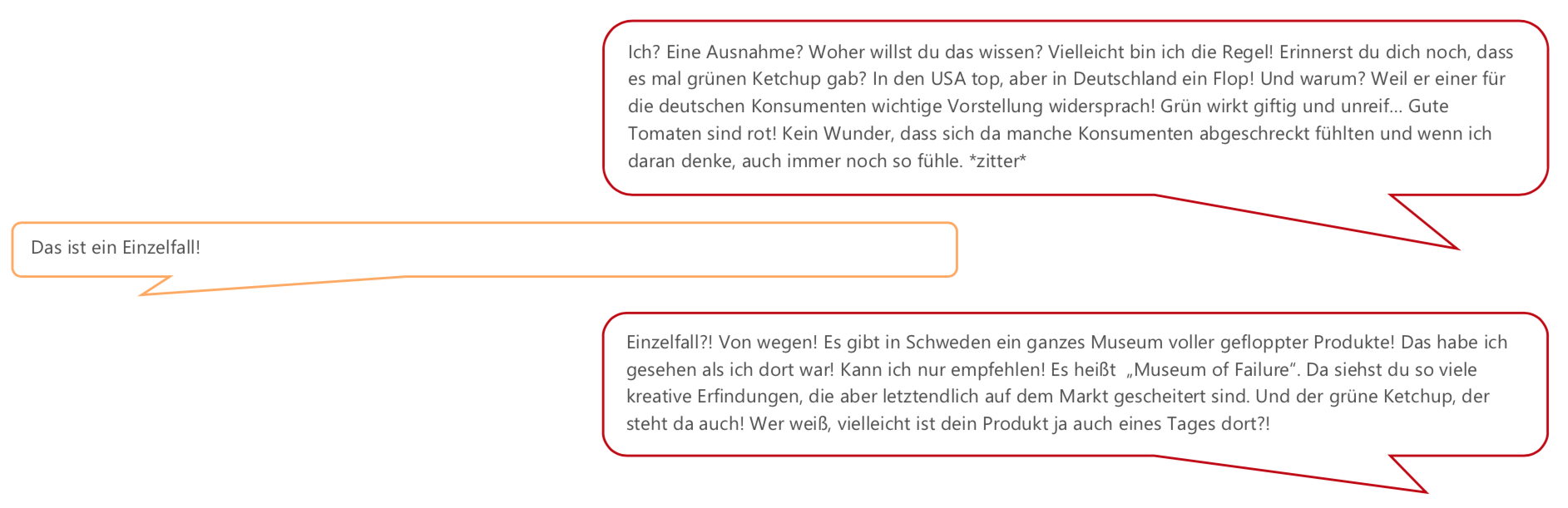 Was meinen Sie? Kann der erfinderische Kollege mit seinem Produkt zuversichtlich in die Zukunft blicken? Lesen Sie wie der Dialog sich fortsetzte: