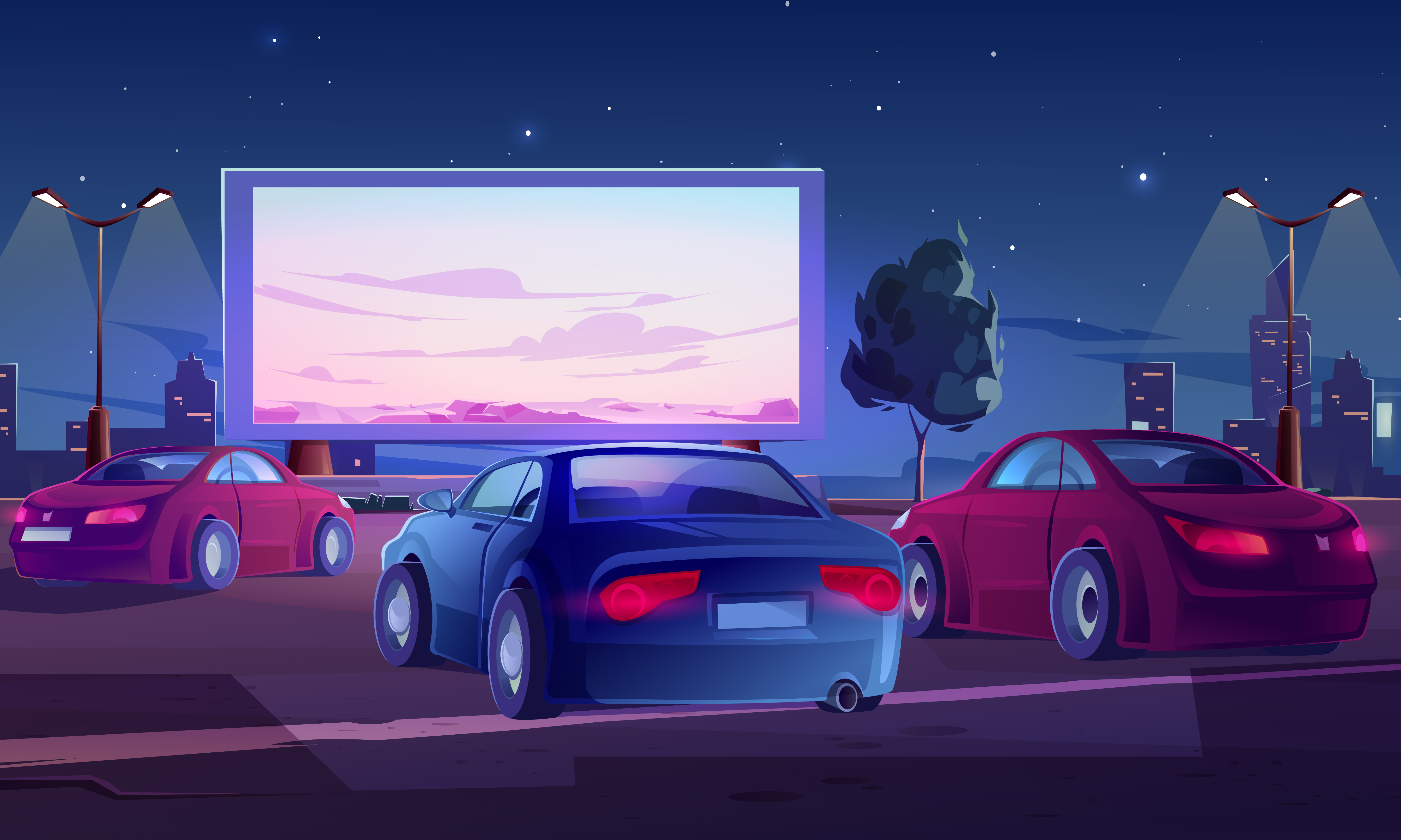 • Angebot, den Film aus dem eigenen, vor der Leinwand geparkten Autos anzugucken